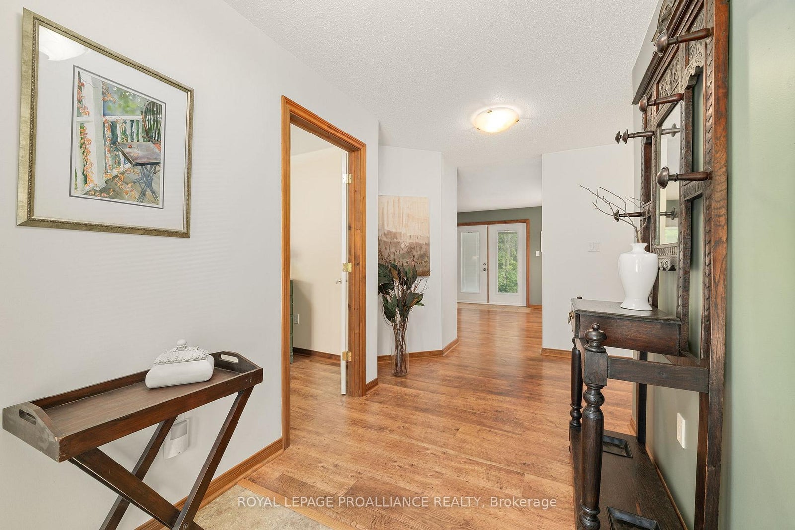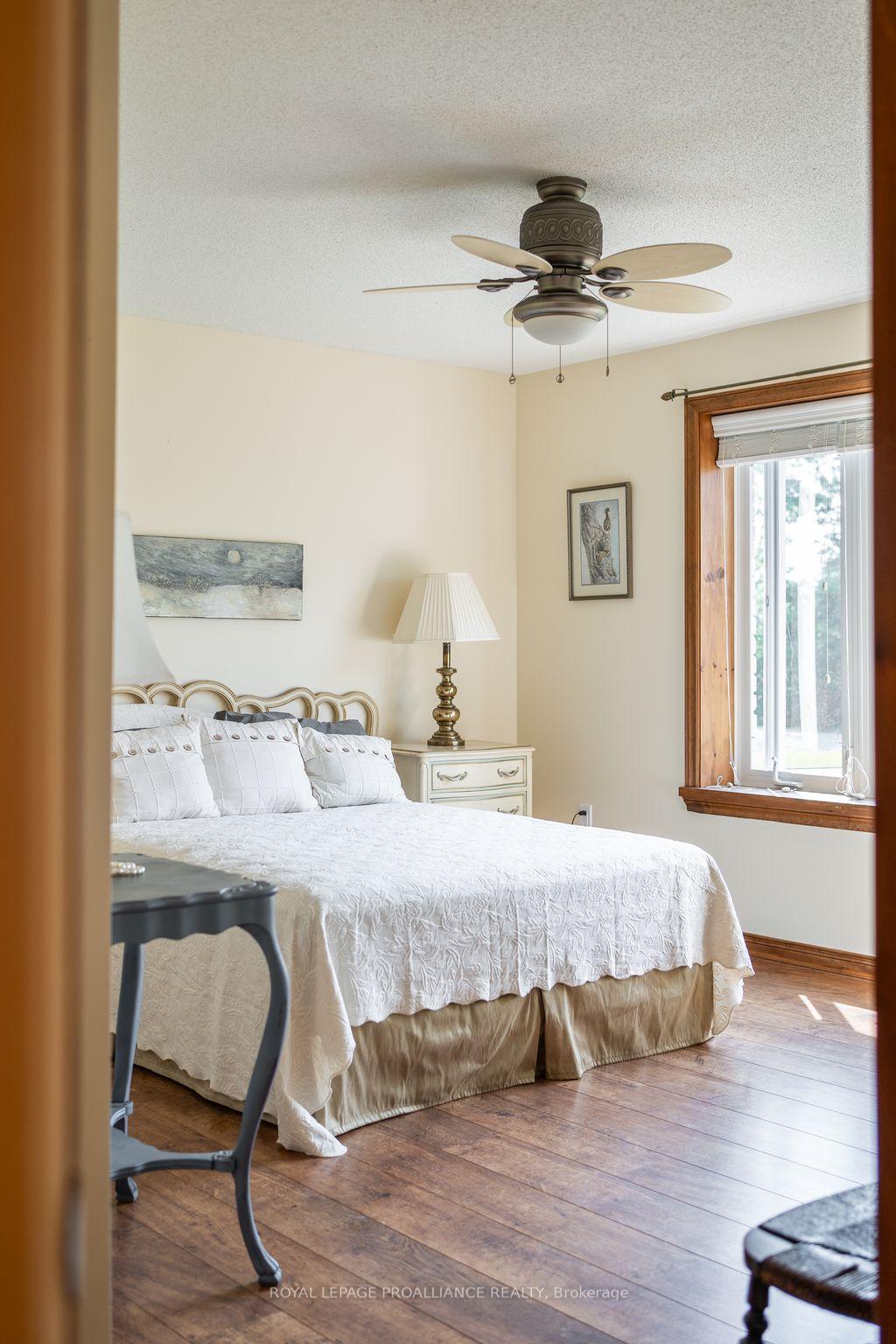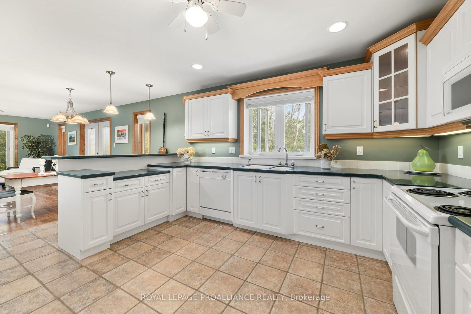 Welcome to your serene retreat nestled in a picturesque, 2-acre, park-like setting. This custom-built bungalow offers the perfect blend of luxury and privacy, featuring a stunning landscape with a tranquil pond, meandering creek, and lush woods. Step inside to discover the epitome of main-floor living at its finest with two spacious bedrooms, including a beautifully appointed cheater ensuite with a soaker tub. The heart of the home, the kitchen, boasts ample counter space and a generous work area, ideal for culinary creations and entertaining guests. Enjoy seamless indoor-outdoor living with patio doors leading to a large deck perfect for BBQs or simply unwinding while overlooking your private oasis. Crafted with the utmost care, this home features superior materials including durable Styrofoam block construction, extra attic insulation, and a premium aluminum interlock roof with a transferable lifetime warranty. The lower level offers limitless potential, ready to be tailored to your needs and desires. Located for convenient commuting to Picton, Bloomfield, Wellington, and Belleville. This exceptional property harmoniously blends rural charm with modern comfort. Experience the tranquility and elegance of this unique home. **EXTRAS** UV/ Water Softener. Aluminum interlock roof with transferable lifetime warranty
