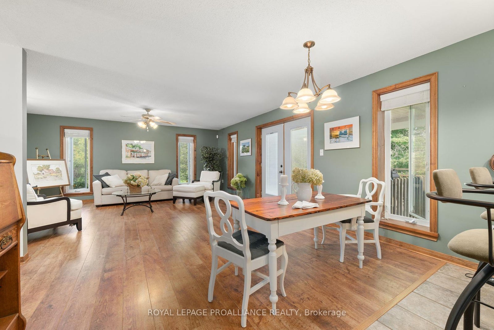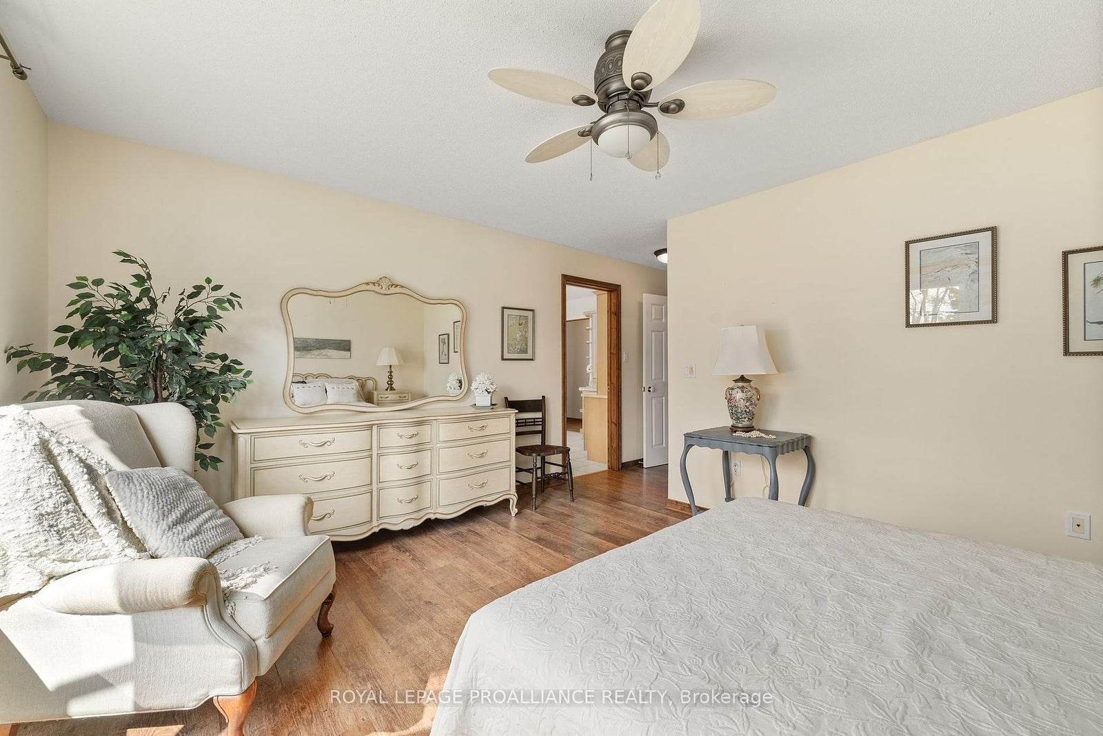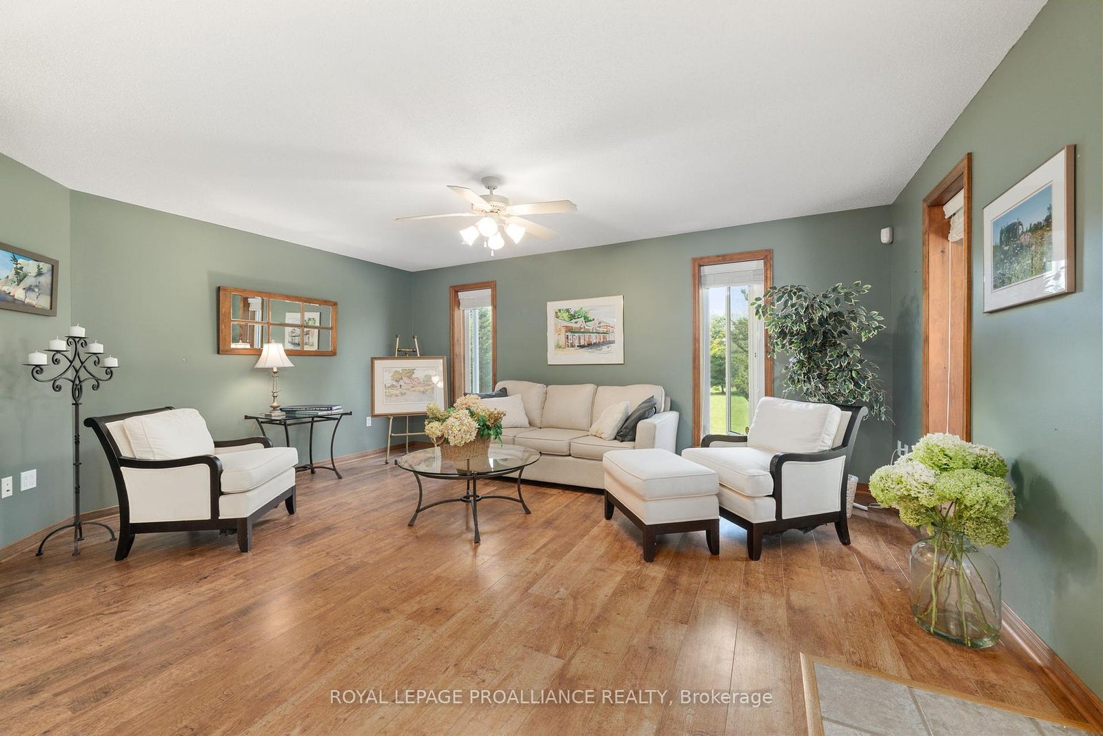 Welcome to your serene retreat nestled in a picturesque, 2-acre, park-like setting. This custom-built bungalow offers the perfect blend of luxury and privacy, featuring a stunning landscape with a tranquil pond, meandering creek, and lush woods. Step inside to discover the epitome of main-floor living at its finest with two spacious bedrooms, including a beautifully appointed cheater ensuite with a soaker tub. The heart of the home, the kitchen, boasts ample counter space and a generous work area, ideal for culinary creations and entertaining guests. Enjoy seamless indoor-outdoor living with patio doors leading to a large deck perfect for BBQs or simply unwinding while overlooking your private oasis. Crafted with the utmost care, this home features superior materials including durable Styrofoam block construction, extra attic insulation, and a premium aluminum interlock roof with a transferable lifetime warranty. The lower level offers limitless potential, ready to be tailored to your needs and desires. Located for convenient commuting to Picton, Bloomfield, Wellington, and Belleville. This exceptional property harmoniously blends rural charm with modern comfort. Experience the tranquility and elegance of this unique home. **EXTRAS** UV/ Water Softener. Aluminum interlock roof with transferable lifetime warranty
