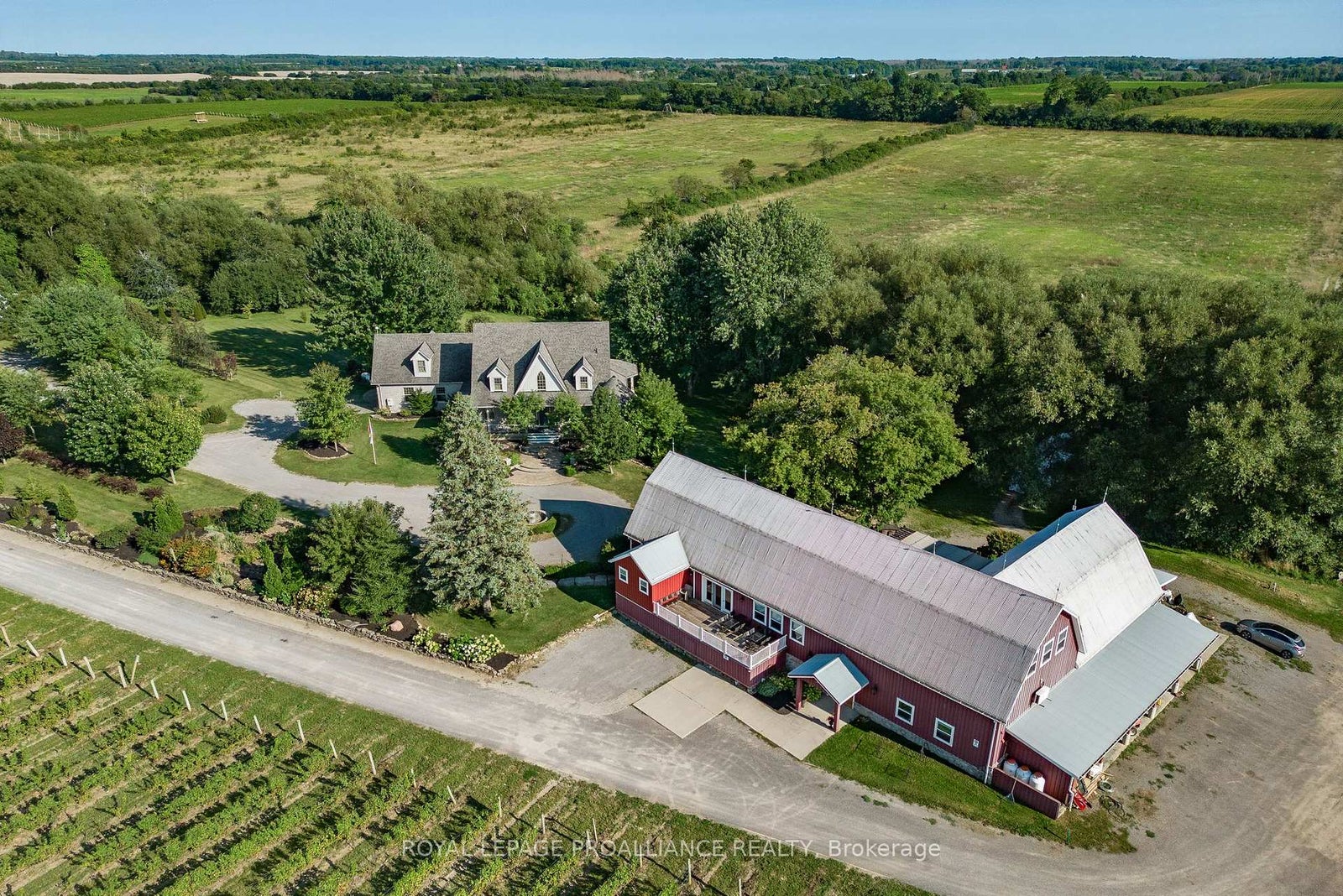 Breathtaking 3800 sq ft custom home 4 bedroom, 6 bathrooms on a picturesque 48 acres with stream running through. This home, built in 2007 won two national awards, placing second for Design & Efficiency. Cherrywood kitchen cabinets, Brazilian soapstone kitchen counters. Beautifully restored 1860 barn with tasting room, wedding/event venue for 100+ people, and production facility. Known as award winning Hillier Creek Estates Winery, nestled in the heart of Prince Edward County's Wine Country. The custom home has had an STA (Short Term Accommodation-Owner Occupied) License. It fronts on to Loyalist Parkway (Highway 33), one of the County's sought-after winery & beach routes. Enjoy the patio with wood fired pizza oven too! Liquor license for 205 people. The very appealing home with cathedral ceilings & wrap-around deck has its own dreamy living quarters as well as separate staff quarters and offices. Relax and enjoy the beauty of the gardens, landscape, creek & wildlife. Live where you love to visit! **EXTRAS** Only 20 minutes to Sandbanks Provincial Park, 2 hours from Toronto. 10 minutes to Wellington. Winery established in 2010. Owners planning to retire. Use as a residence or continue with the winery. Great opportunity! Equipment, Chattels & Inventory Negotiable