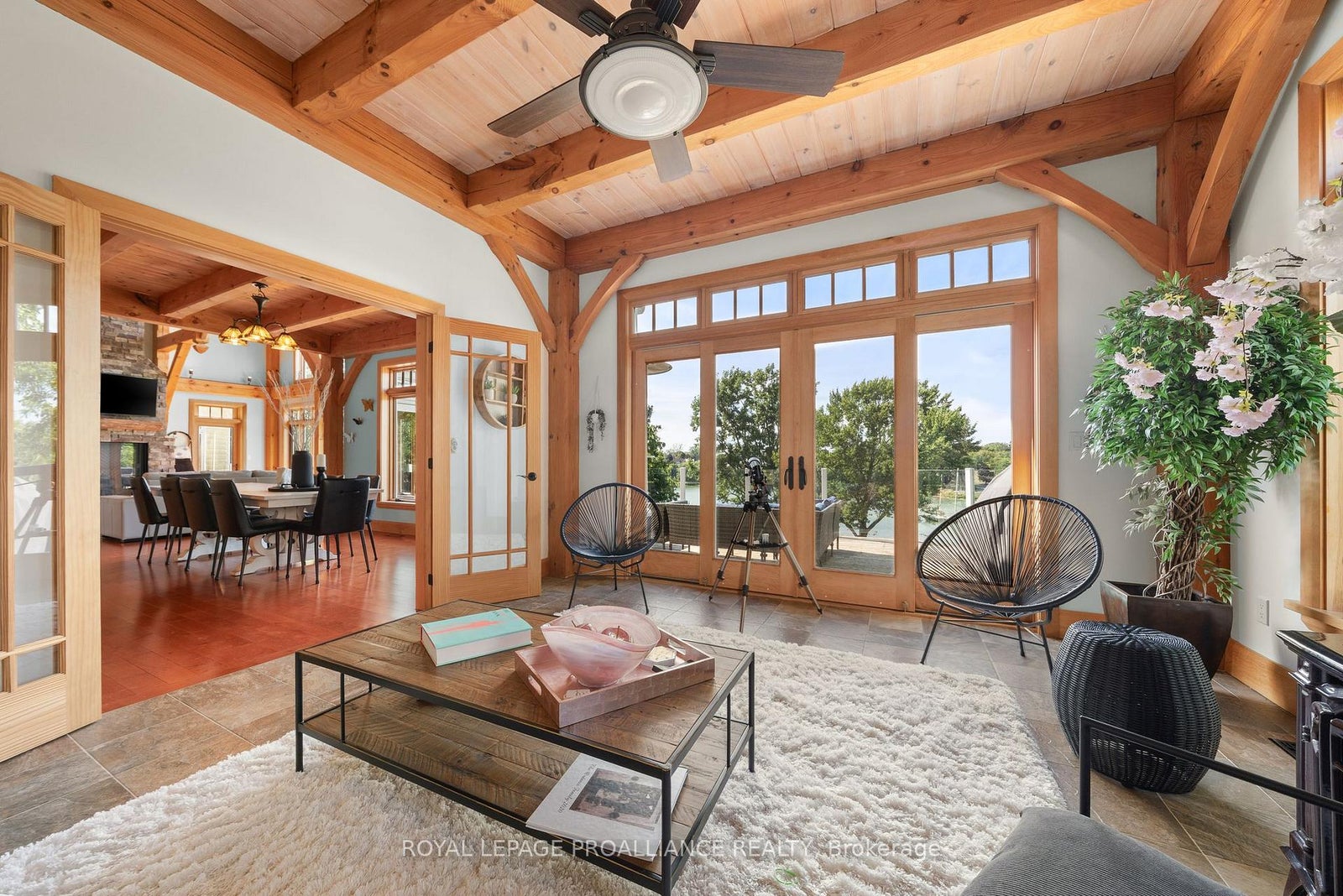 This luxurious estate is an executive, custom post and beam waterfront property on Picton Bay. With 1.3 acres of land, directly across the harbour from the Prince Edward Yacht Club, this home is a boat lovers paradise. Built in 2012, this magnificent retreat features vaulted ceilings, three spacious levels with five bedrooms and four and a half bathrooms, a walkout patio on the lower level, and two stunning main-floor decks perfect for taking in the harbour view with your morning coffee. Over 5,000 total sq ft of living space to enjoy. A rare 2+2 car garage completes the picture. This beautiful place is a perfect gathering spot for friends and family and is an entertainer's dream complete with hot tub, custom waterfront benches, fire pit, basketball and pickleball games area, large boat dock with kayak launch, professional fitness room and more. Situated within the town limits, just minutes from all the amenities this lovely town has to offer. Located only 2.5 hours from Toronto, Prince Edward County is renowned for the beaches at Sandbanks Provincial Park, outstanding cuisine, wine, art galleries, wineries, golf, local markets and shops. Home to the Royal Hotel, which was recently awarded the prestigious MICHELIN Key, and our beloved historical Regent Theatre. Prince Edward Memorial Hospital is 10 minutes away and our new hospital is rising from the ground right behind the old one! If you have been considering buying a home in the County, this is the one you've been waiting for. Why not live where you love to visit? (See photos below of the beautiful newly restored Claramount Hotel just steps away.)
