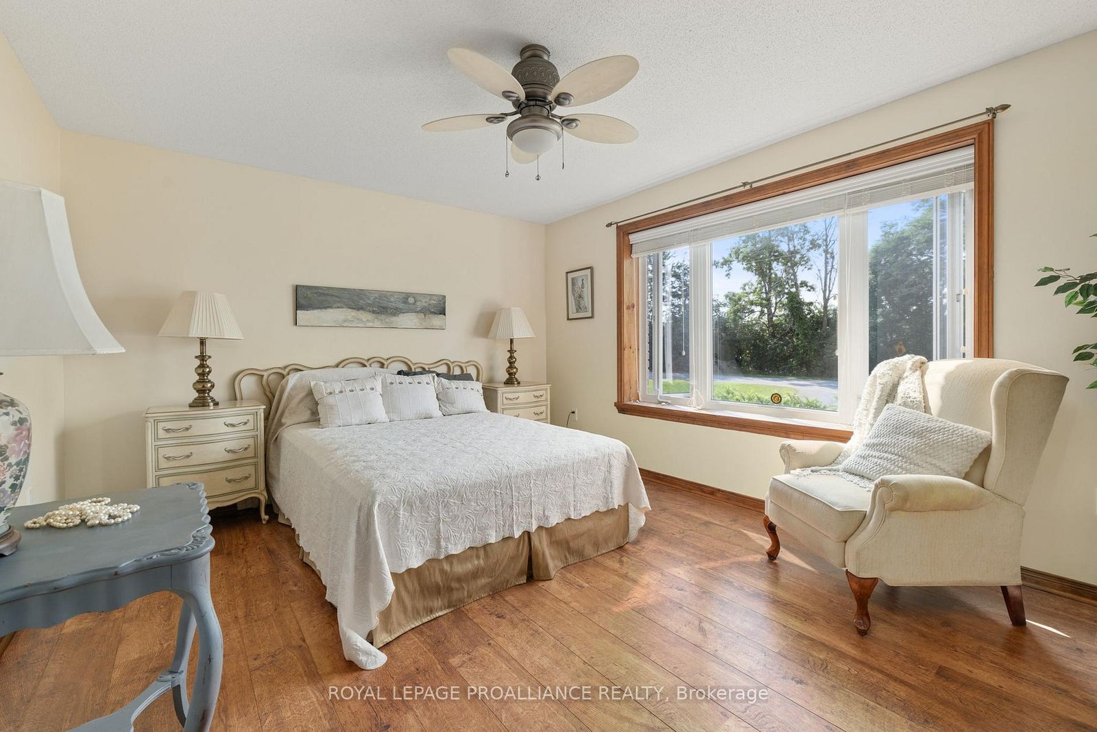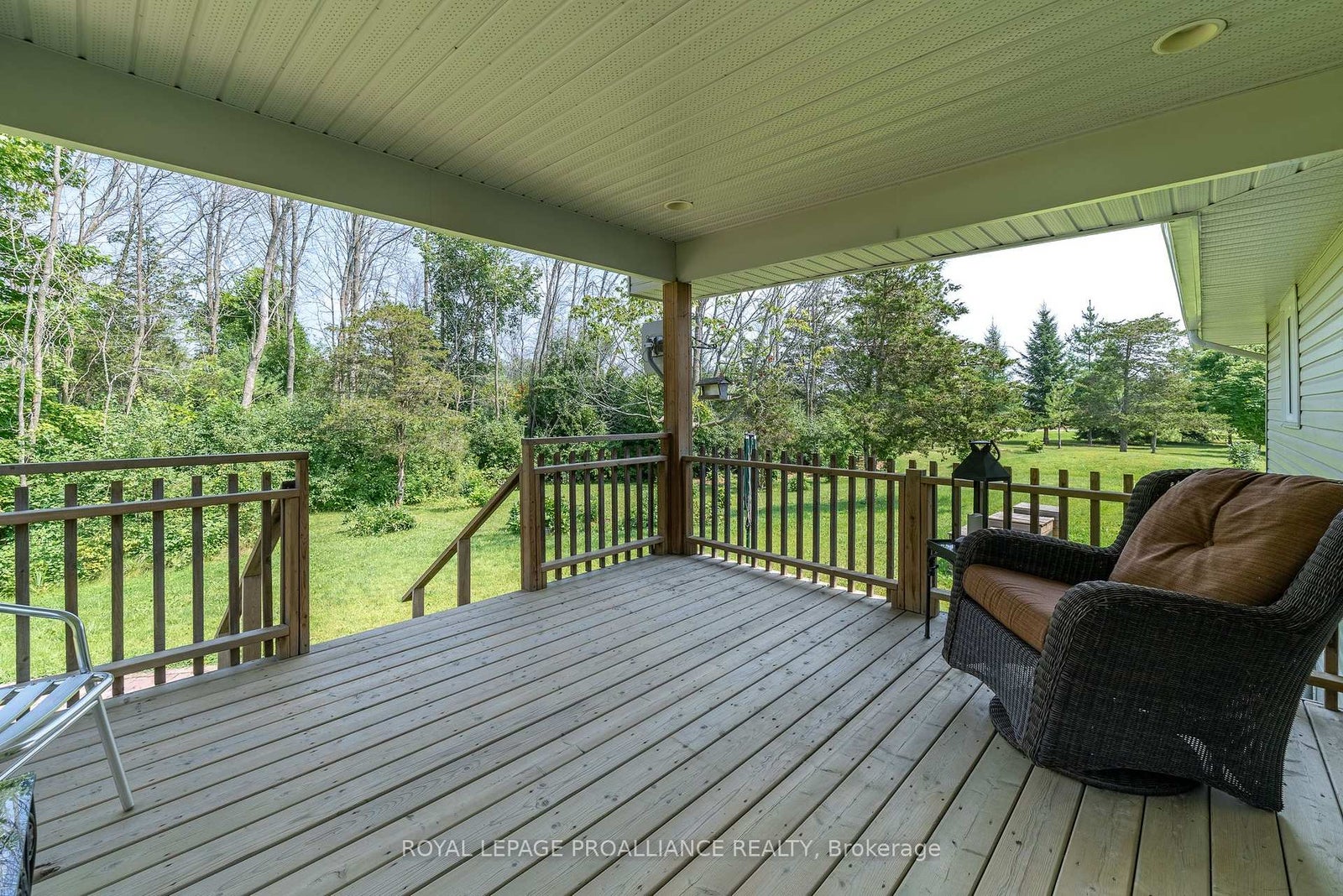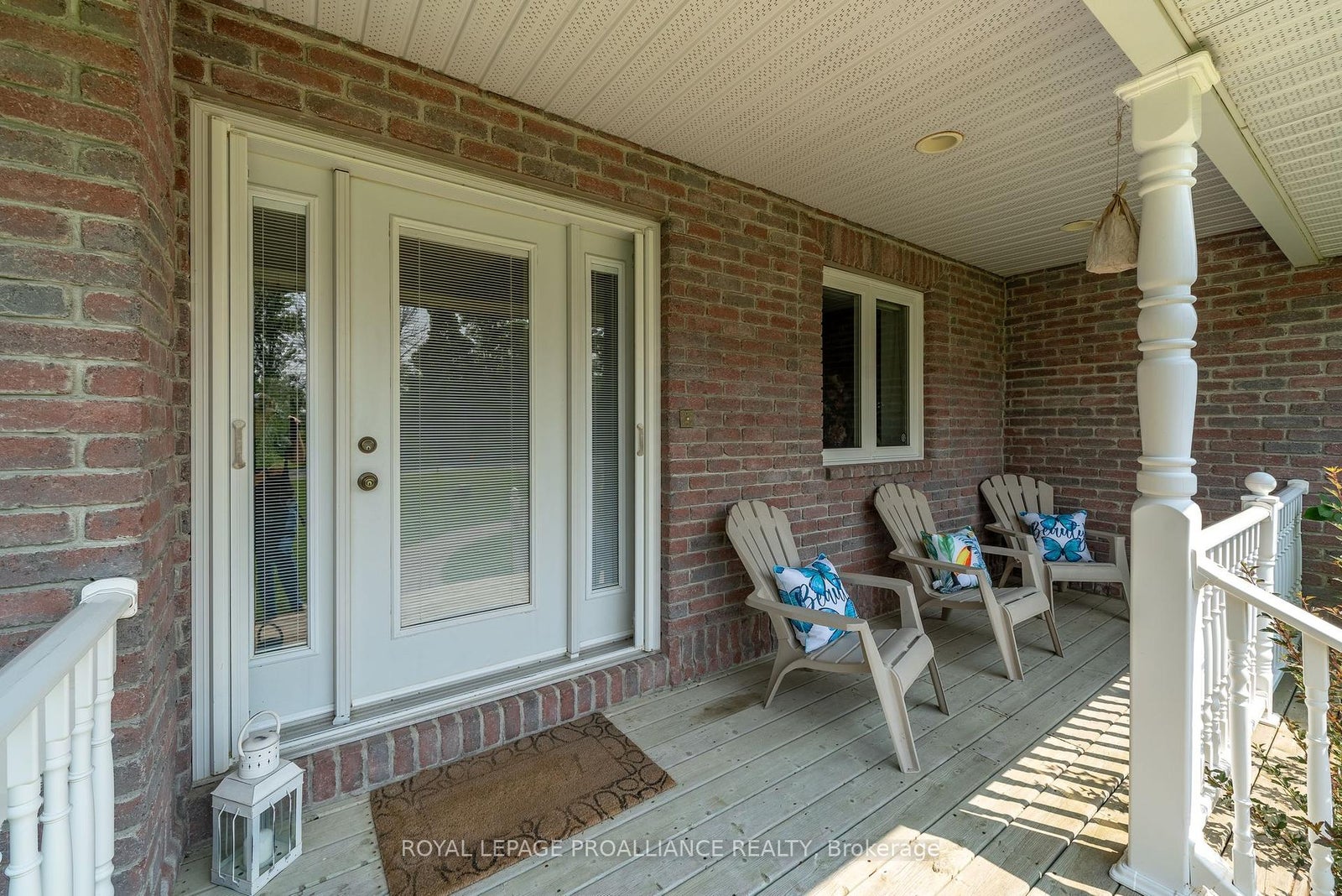 Welcome to your serene retreat nestled in a picturesque, 2-acre, park-like setting. This custom-built bungalow offers the perfect blend of luxury and privacy, featuring a stunning landscape with a tranquil pond, meandering creek, and lush woods. Step inside to discover the epitome of main-floor living at its finest with two spacious bedrooms, including a beautifully appointed cheater ensuite with a soaker tub. The heart of the home, the kitchen, boasts ample counter space and a generous work area, ideal for culinary creations and entertaining guests. Enjoy seamless indoor-outdoor living with patio doors leading to a large deck perfect for BBQs or simply unwinding while overlooking your private oasis. Crafted with the utmost care, this home features superior materials including durable Styrofoam block construction, extra attic insulation, and a premium aluminum interlock roof with a transferable lifetime warranty. The lower level offers limitless potential, ready to be tailored to your needs and desires. Located for convenient commuting to Picton, Bloomfield, Wellington, and Belleville. This exceptional property harmoniously blends rural charm with modern comfort. Experience the tranquility and elegance of this unique home. **EXTRAS** UV/ Water Softener. Aluminum interlock roof with transferable lifetime warranty