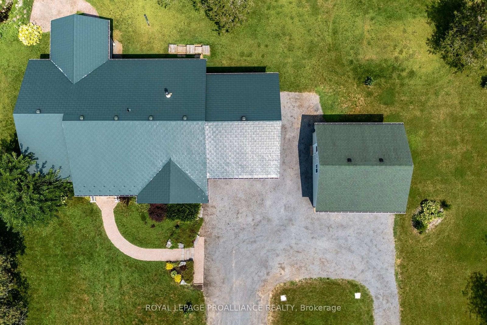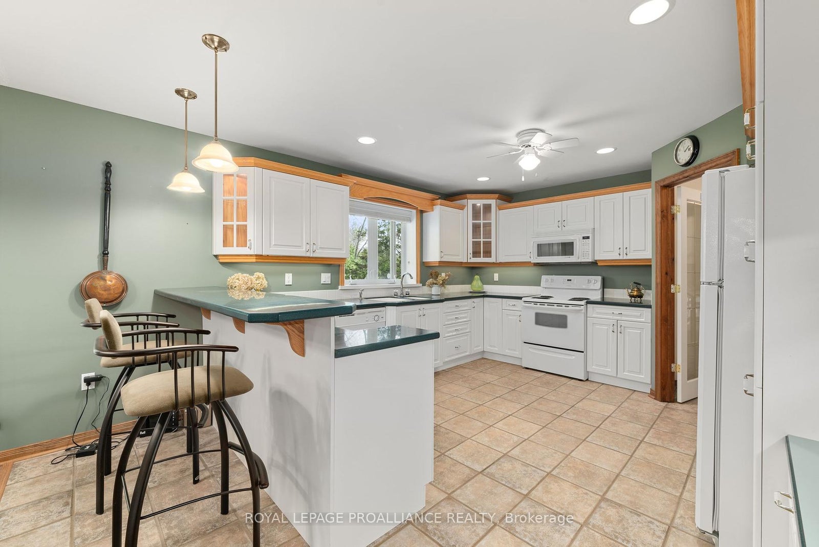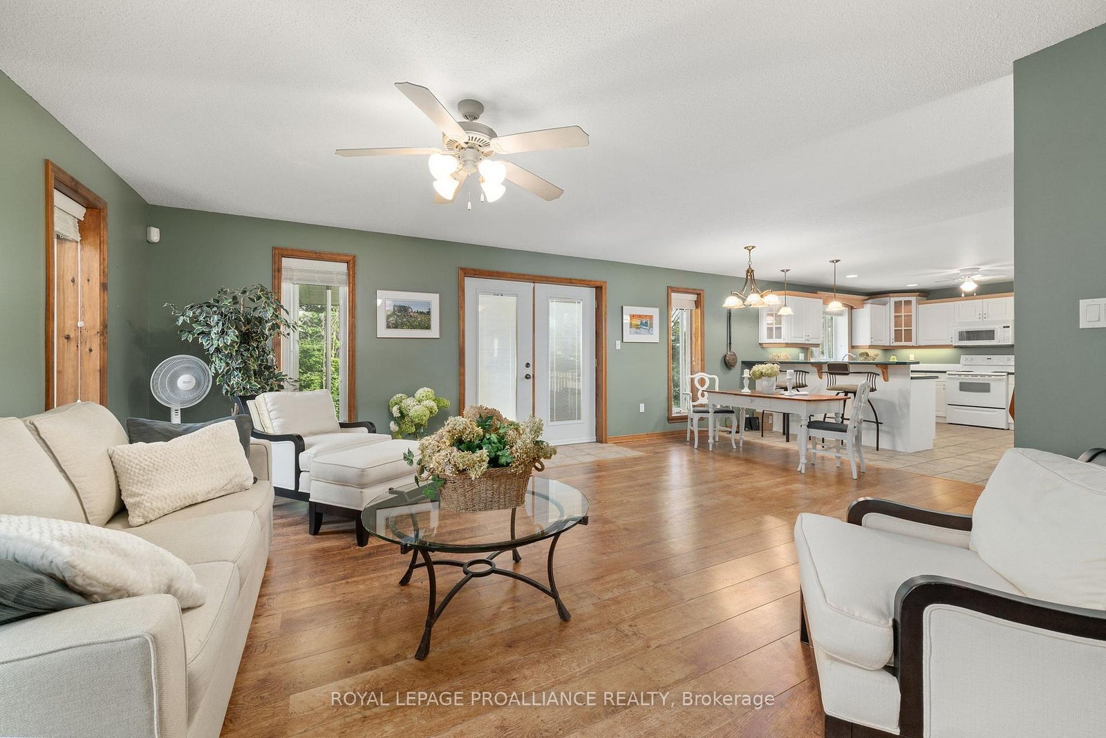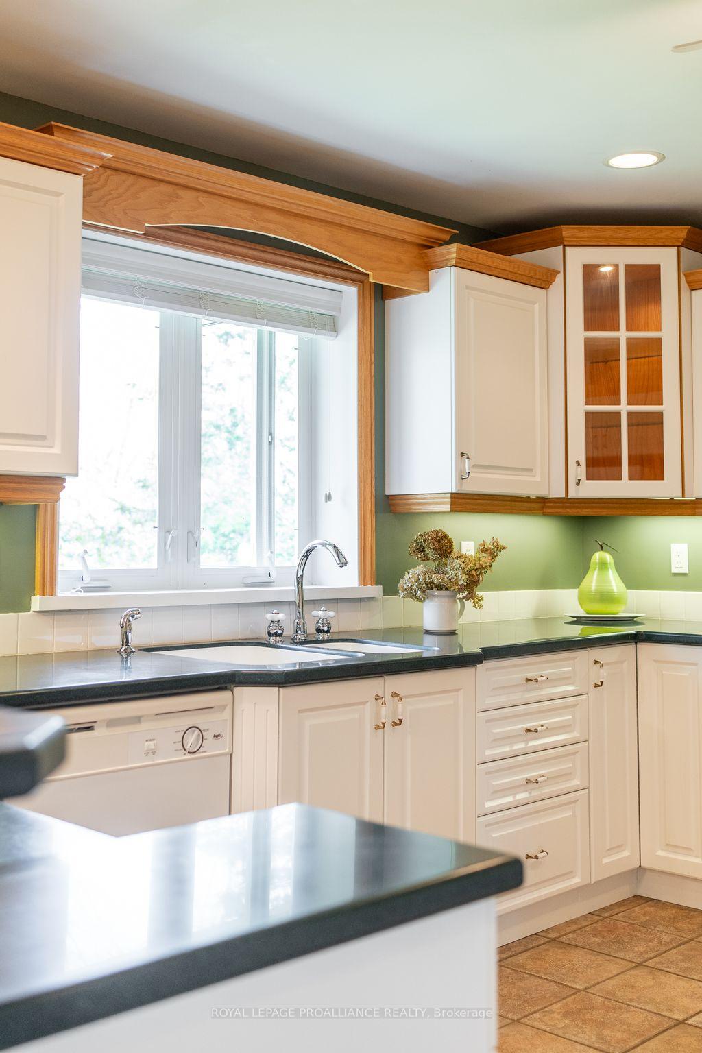 Welcome to your serene retreat nestled in a picturesque, 2-acre, park-like setting. This custom-built bungalow offers the perfect blend of luxury and privacy, featuring a stunning landscape with a tranquil pond, meandering creek, and lush woods. Step inside to discover the epitome of main-floor living at its finest with two spacious bedrooms, including a beautifully appointed cheater ensuite with a soaker tub. The heart of the home, the kitchen, boasts ample counter space and a generous work area, ideal for culinary creations and entertaining guests. Enjoy seamless indoor-outdoor living with patio doors leading to a large deck perfect for BBQs or simply unwinding while overlooking your private oasis. Crafted with the utmost care, this home features superior materials including durable Styrofoam block construction, extra attic insulation, and a premium aluminum interlock roof with a transferable lifetime warranty. The lower level offers limitless potential, ready to be tailored to your needs and desires. Located for convenient commuting to Picton, Bloomfield, Wellington, and Belleville. This exceptional property harmoniously blends rural charm with modern comfort. Experience the tranquility and elegance of this unique home. **EXTRAS** UV/ Water Softener. Aluminum interlock roof with transferable lifetime warranty