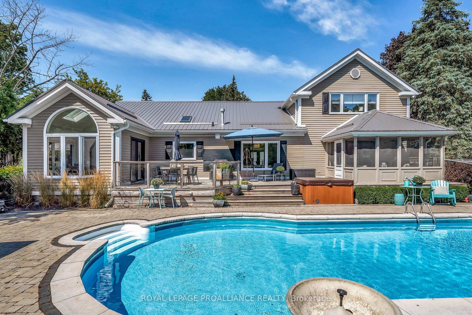Welcome to 3 Wesley Acres, an oasis located in the village of Bloomfield in Prince Edward County. This breathtaking home comes with a whole home STA License and features over 3,000 sq. ft. of living space, set on a 150-foot-wide lot with a circular drive and a two-car garage. This property boasts sensational indoor and outdoor living spaces, along with a beautifully landscaped garden featuring a fabulous in-ground pool. The main floor opens with a striking foyer and features a charming bedroom, a spacious living room, and a dining area that overlooks the terrace and pool. The newly designed contemporary kitchen and family room extend to a screened in porch - ideal for warm summer days and evenings. A bright conservatory off the kitchen also leads to the terrace. At the back of the home, a private garden with a hot tub and fire pit creates the perfect setting for relaxation and entertaining. Upstairs, you'll find the primary bedroom with 5pc ensuite, two additional delightful bedrooms, and another 5 piece bathroom. Prince Edward County has become one of the premier destinations for those seeking unforgettable experiences. Whether its exploring nature, enjoying water sports and sailing, savoring food and wine, or simply relaxing by the water, there is something for everyone. Nearby in Picton, you'll find The Royal Hotel, The Waring House, The Regent Theatre, The Prince Edward Yacht Club, and numerous fine dining restaurants. There truly is something for everyone here in the County. Upgrades: New Kitchen & Kitchen Appliances 2024, Metal Roof 2023. Generator 2023 (Briggs & Stratton); New Fuse Box hooked up to Generator, New Chimney 2022, Pool Heater 2024, New Windows in Office (except for doors), Upstairs Bedrooms & Bathrooms. Dining Room Window 2022. New Front Door 2023, New Insulation in Attic and Basement 2023 , Upgraded Electrical 2023, New Eavestrough 2024, Alarm System 2022.
