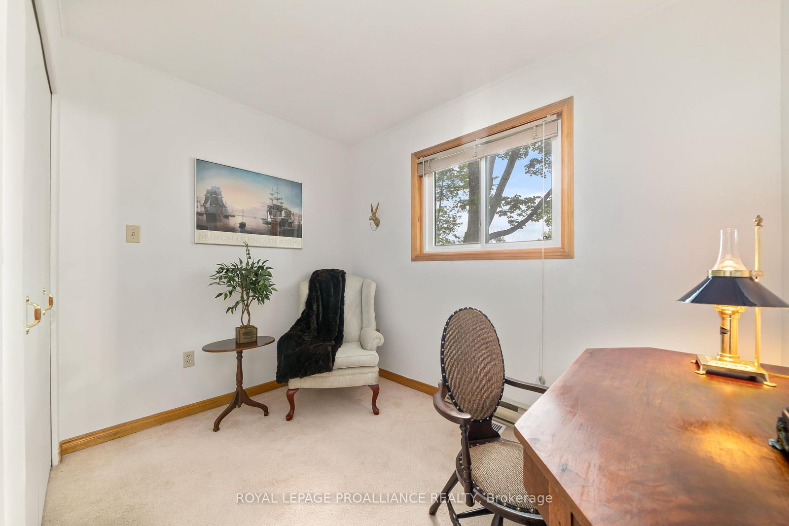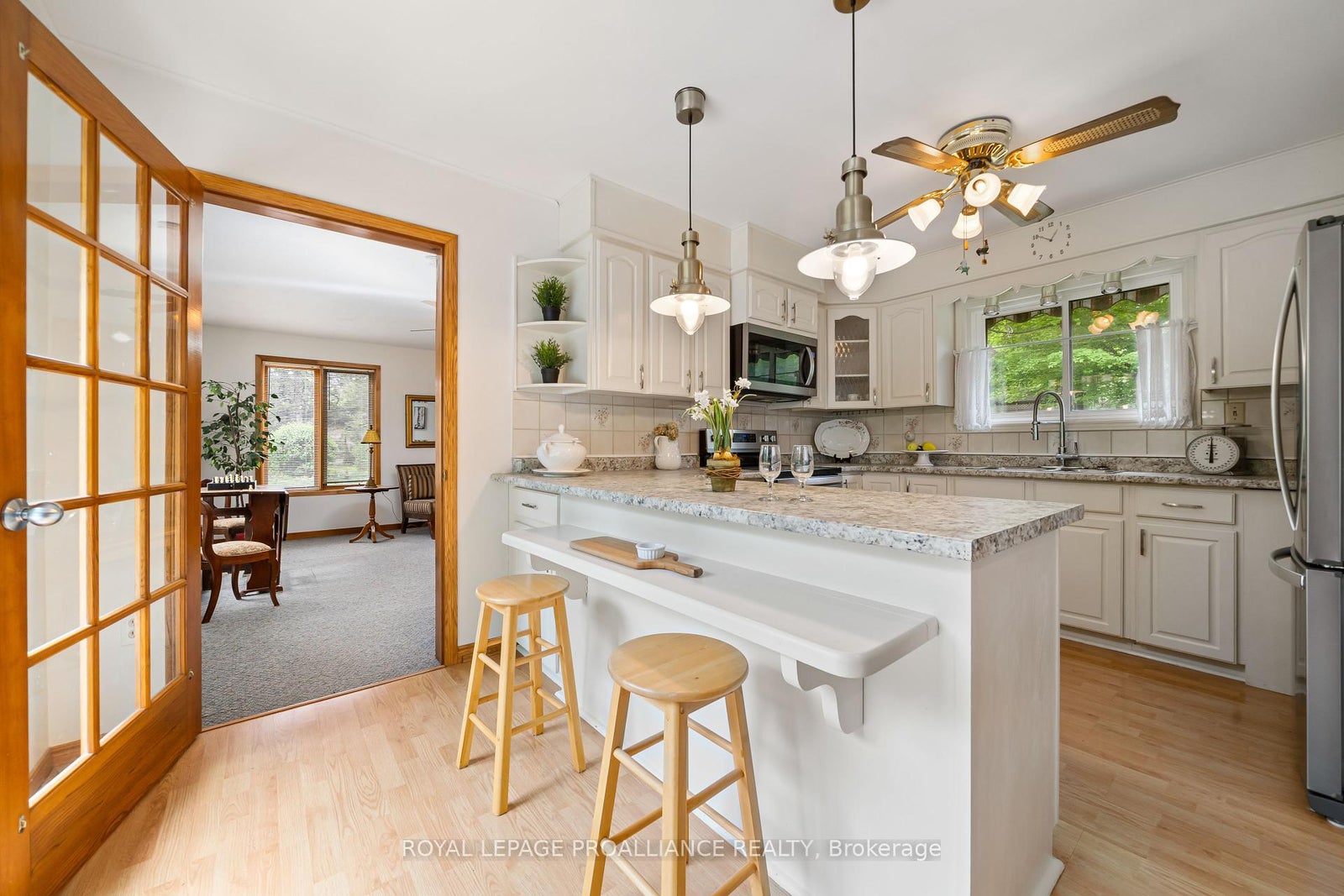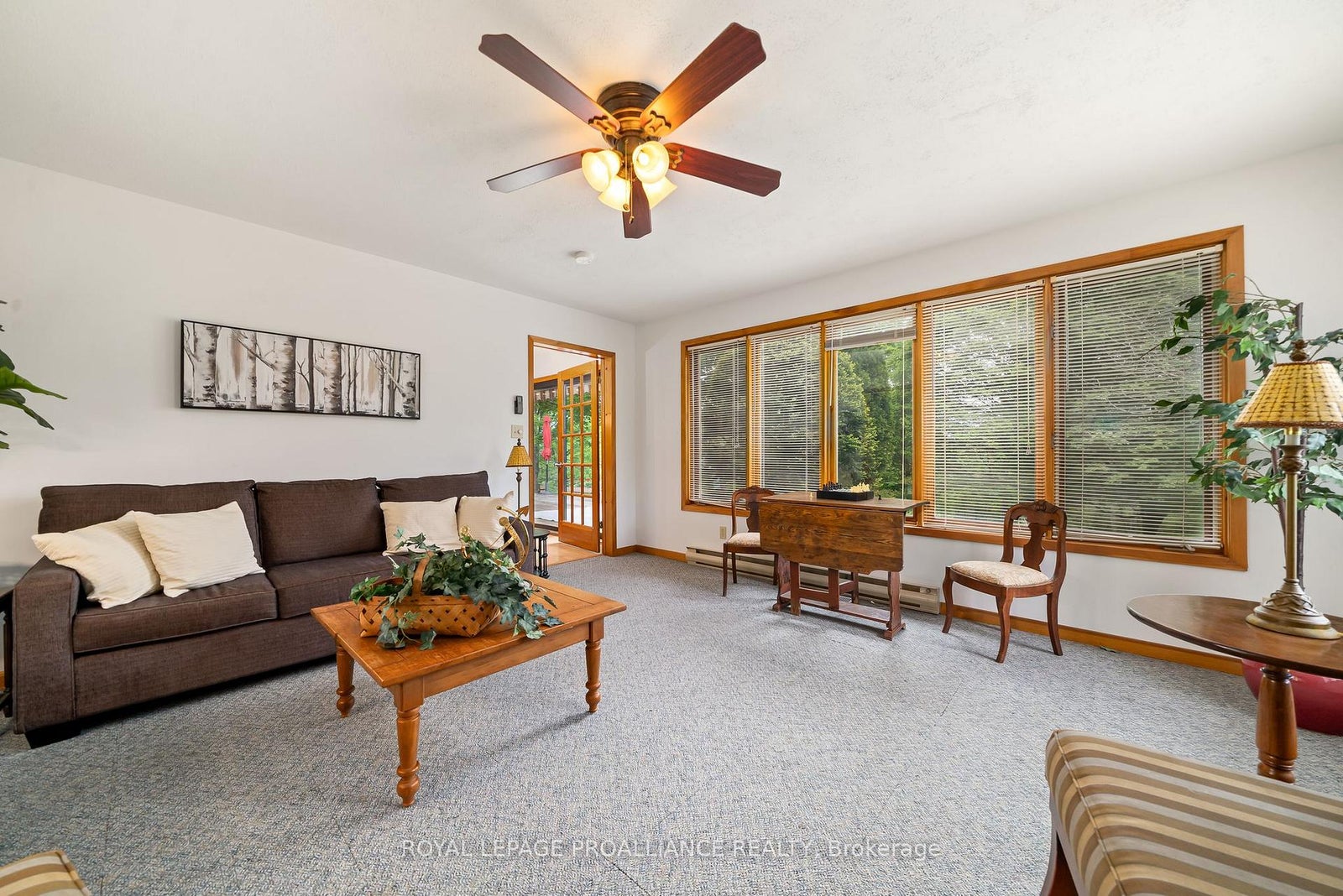 Hidden out of sight from Loyalist Parkway, this waterfront bungalow offers privacy and a great view of the lake. A rolling lawn leads up to a sitting area with Adirondack chairs and a cozy fire pit. At the water's edge, there is a dock great for swimming or fishing in the Bay of Quinte (Adolphus Reach), which is recognized as one of the best places in the world for fishing (Pickerel). On the main floor, one will enjoy the living and dining room area, as well as the family space with large windows that flood the space with natural light. The main floor also includes 3 bedrooms and a 4-piece bathroom. On the lower level, a bedroom, living room, 3-piece bathroom, and a mini kitchen with a separate entrance. Just east of the property, a very handy municipal dock and boat launch. The property boasts raised gardens and a garage. This is the perfect place to relax with family this summer and all year round in this 4-season home. Just a short drive away, you have the Regent Theatre, The Royal Hotel, The Prince Edward County Memorial Hospital, Slickers Ice Cream and restaurants, and so many wonderful shops. The Sandbanks Provincial Park is only 20 minutes from Picton, and wineries abound in The County. The County is the premier destination for attractions & epic experiences for folks who love nature, water sports, sailing, food and wine and just plain relaxing.