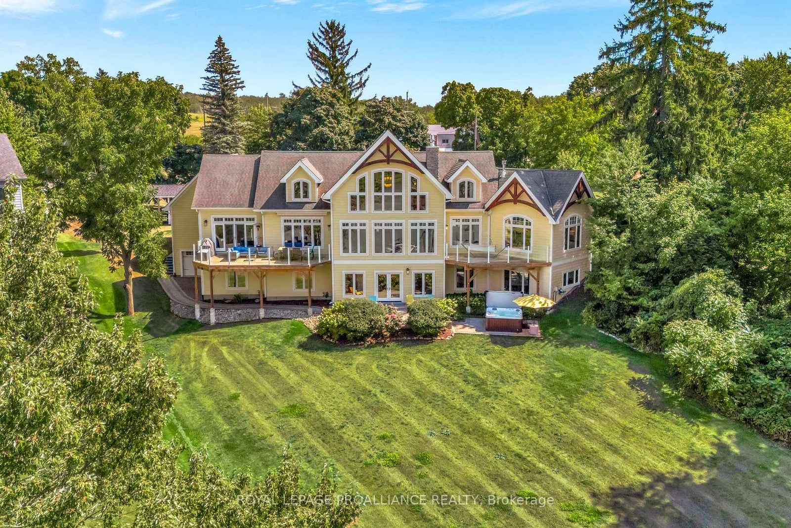 This luxurious estate is an executive, custom post and beam waterfront property on Picton Bay. With 1.3 acres of land, directly across the harbour from the Prince Edward Yacht Club, this home is a boat lovers paradise. Built in 2012, this magnificent retreat features vaulted ceilings, three spacious levels with five bedrooms and four and a half bathrooms, a walkout patio on the lower level, and two stunning main-floor decks perfect for taking in the harbour view with your morning coffee. Over 5,000 total sq ft of living space to enjoy. A rare 2+2 car garage completes the picture. This beautiful place is a perfect gathering spot for friends and family and is an entertainer's dream complete with hot tub, custom waterfront benches, fire pit, basketball and pickleball games area, large boat dock with kayak launch, professional fitness room and more. Situated within the town limits, just minutes from all the amenities this lovely town has to offer. Located only 2.5 hours from Toronto, Prince Edward County is renowned for the beaches at Sandbanks Provincial Park, outstanding cuisine, wine, art galleries, wineries, golf, local markets and shops. Home to the Royal Hotel, which was recently awarded the prestigious MICHELIN Key, and our beloved historical Regent Theatre. Prince Edward Memorial Hospital is 10 minutes away and our new hospital is rising from the ground right behind the old one! If you have been considering buying a home in the County, this is the one you've been waiting for. Why not live where you love to visit? (See photos below of the beautiful newly restored Claramount Hotel just steps away.)