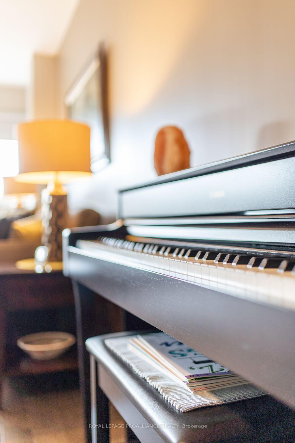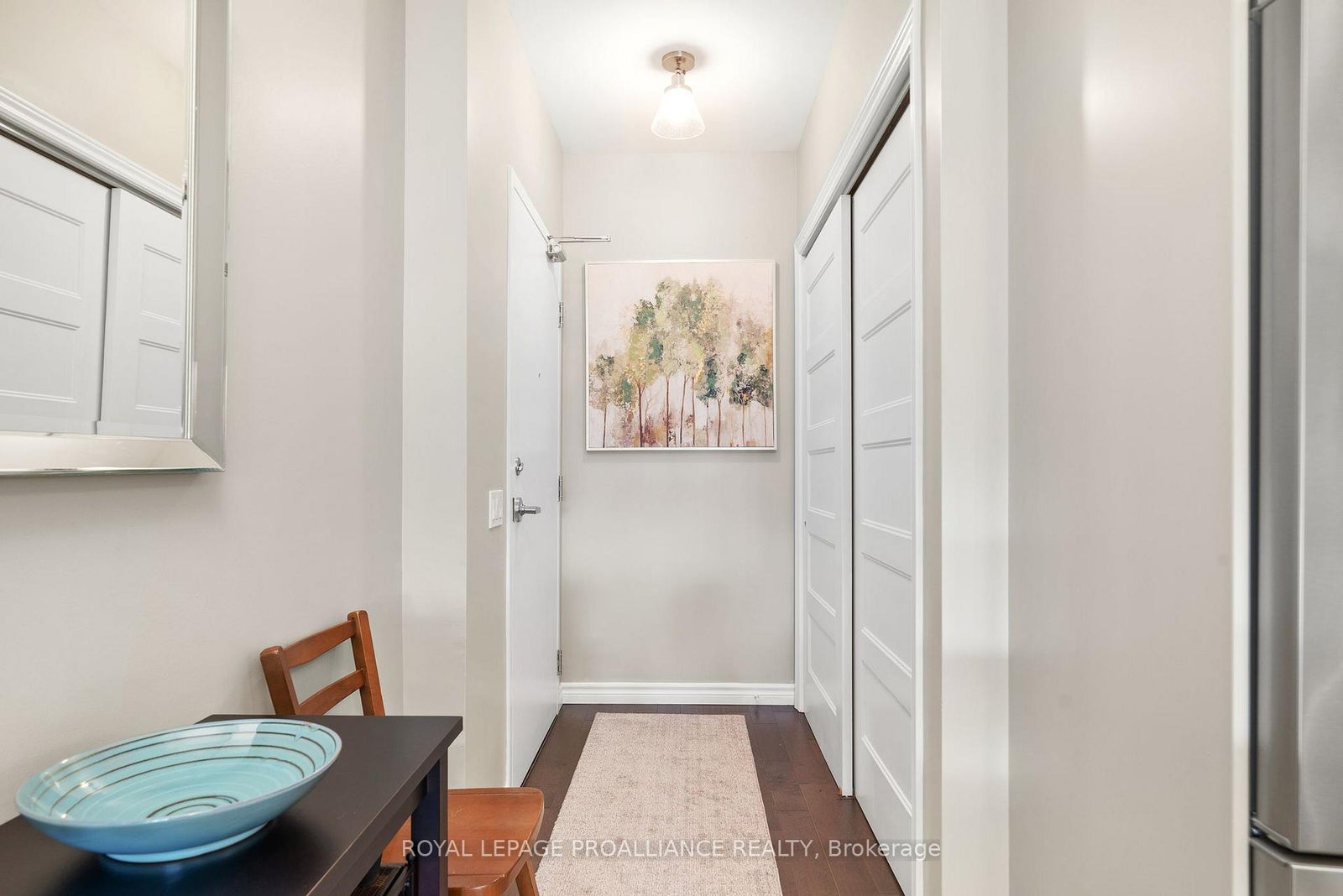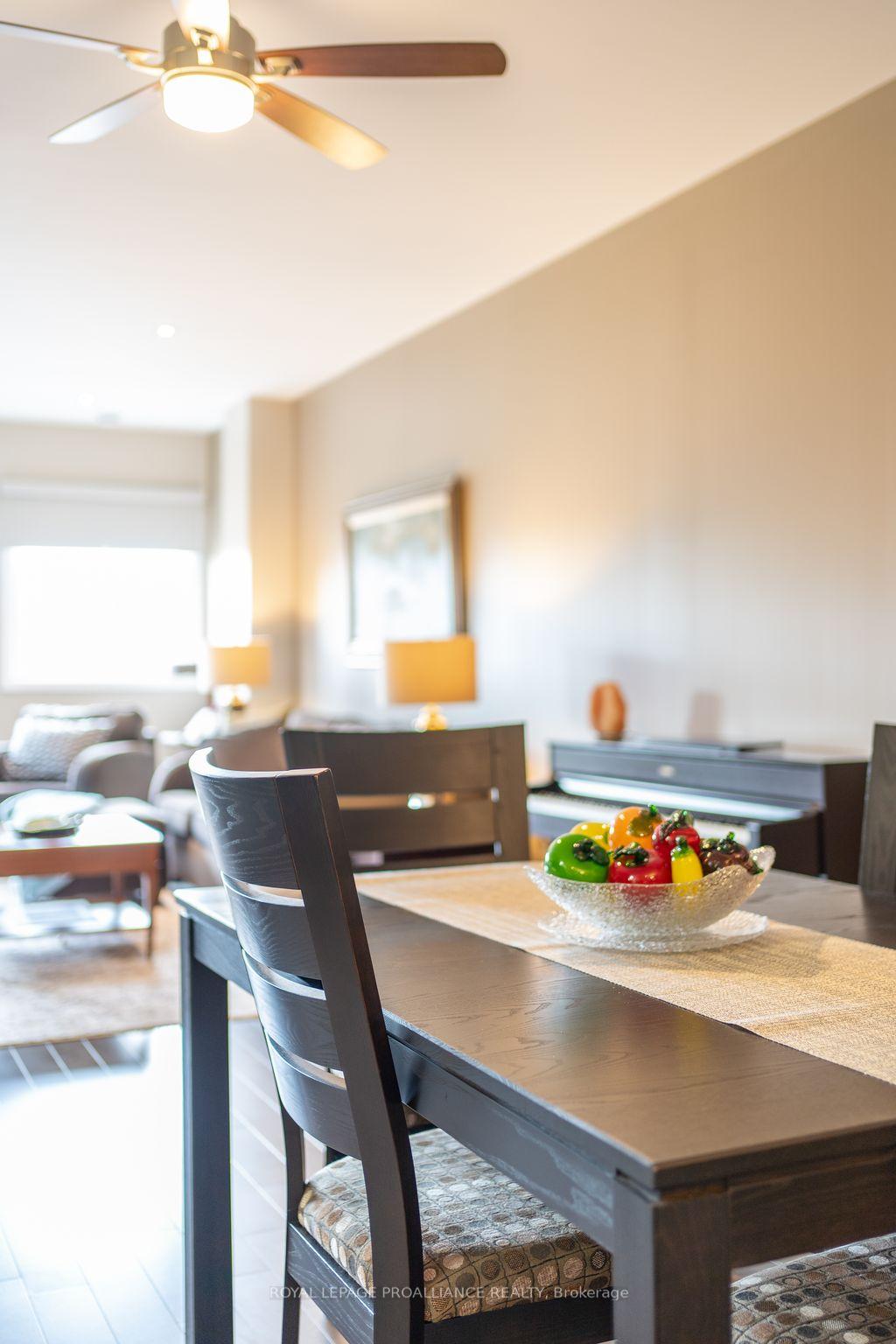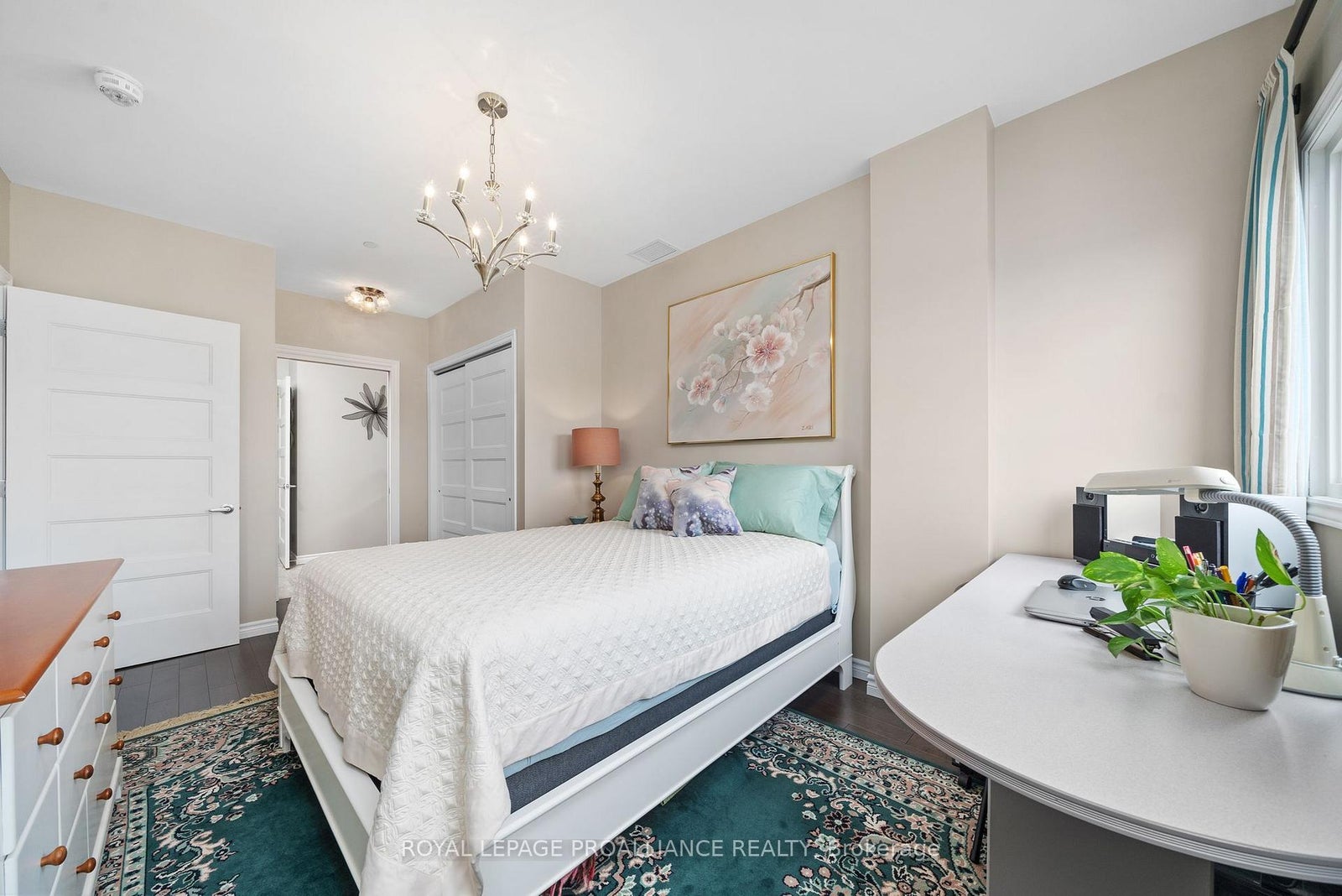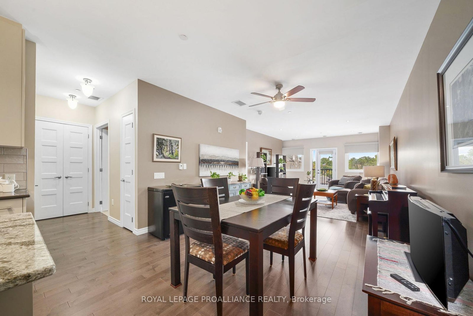 Welcome to Century Place/Village, where urban luxury meets effortless living in the heart of Belleville. This beautifully maintained fourth-floor condo offers a bright, open- concept layout with one bedroom plus den, featuring a spacious primary suite with a stylish ensuite. The modern kitchen boasts quartz countertops, sleek cabinetry, and a large island, flowing seamlessly into sun-filled dining and living areas with views of Belleville's vibrant downtown. Enjoy the convenience of in-suite laundry and premium upgrades throughout. Residents of Century Place/Village enjoy exceptional amenities including a 3rd floor rooftop patio with BBQ and city views, adjoining common room with kitchen, main floor fully equipped fitness center with cafe (fee), secure access, heated underground parking, and a wine bar on the main level. Ideally located near the revitalized market place armories with restaurants, shops, and entertainment, this condo is perfect for young professionals or retirees seeking a sophisticated, low-maintenance lifestyle. Compliments of the current owner, enjoy a 3 month membership to the gym upon closing.