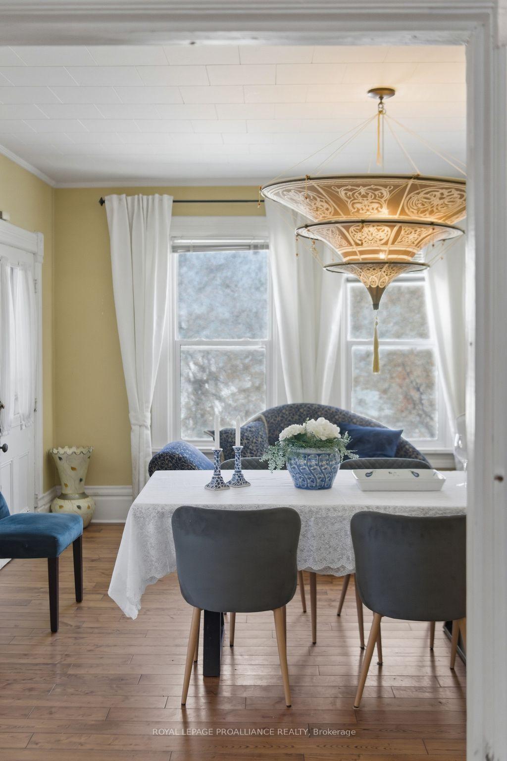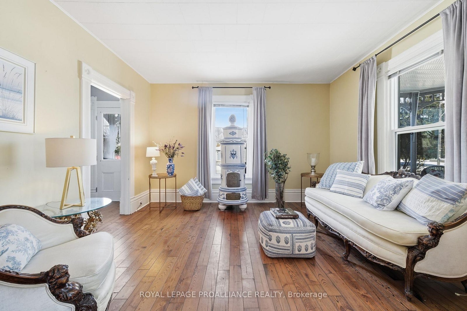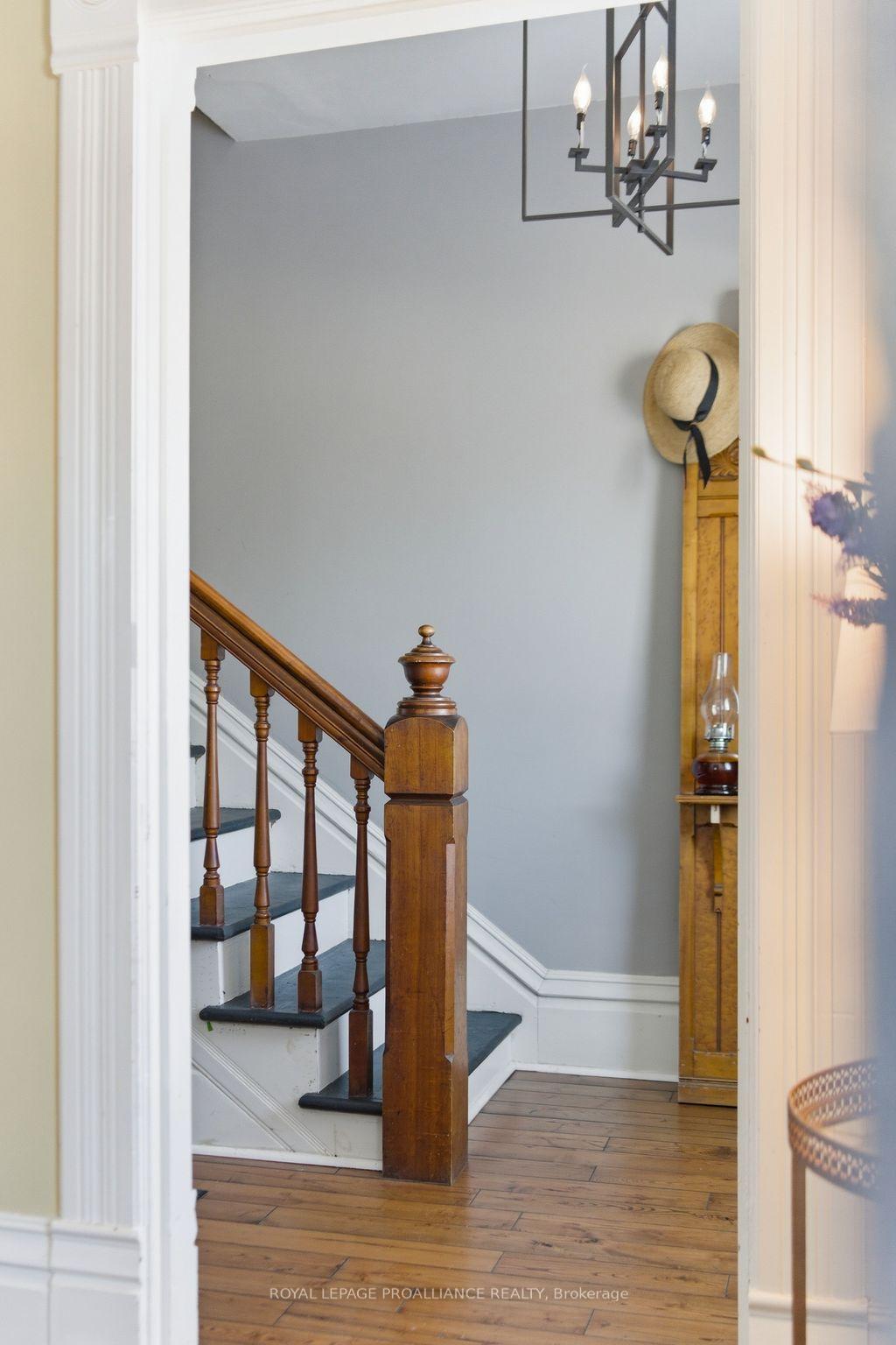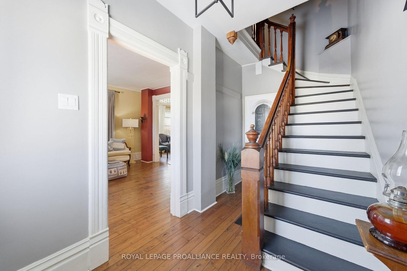 Introducing 47 Paul Street in the heart of picturesque Prince Edward County. Perfectly positioned on a prominent corner in one of Picton's most desirable neighbourhoods, this classic Queen Anne residence sits just steps away from the local school and park, and is an easystroll to downtown shops, dining, theatre, and amenities. Surrounded by other heritage properties, this distinguished home stands out with its wraparound gazebo-style porch adorned with intricate gingerbread detailing. Large, inviting windows fill the interior with natural light, creating a warm and welcoming atmosphere ideal for family living or guest accommodations. The home offers three bedrooms and two full bathrooms as well as a transferrable whole-home Short-Term Accommodation (STA) license. Character details are beautifully preserved throughout, from the tongue-and-groove wood ceiling in the kitchen to the original millwork, decorative spindle accents, and substantial baseboards. Designed with both comfort and entertaining in mind, the main floor features a formal dining room and spacious living room, alongside an updated kitchen complete with brand-new countertops and charming original wood ceiling detail. The home's original staircase leads to a generous upper level with a cozy family sitting area, three well-proportioned bedrooms, and a second full bathroom. Practical features include a detached single-car garage and ample storage space, offering convenience to match the home's historic charm. At 47 Paul Street, classic architectural beauty blends seamlessly with modern-day updates.