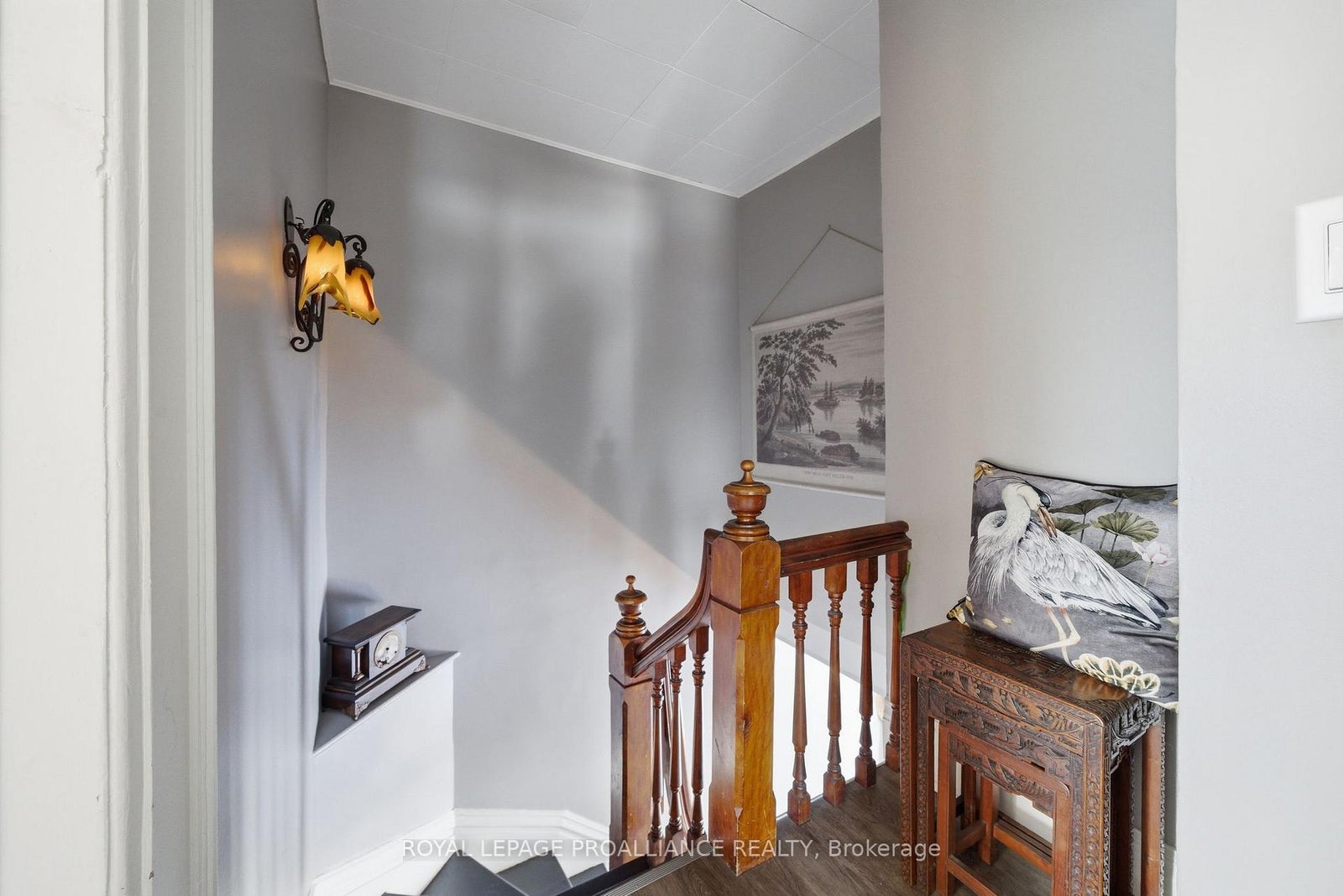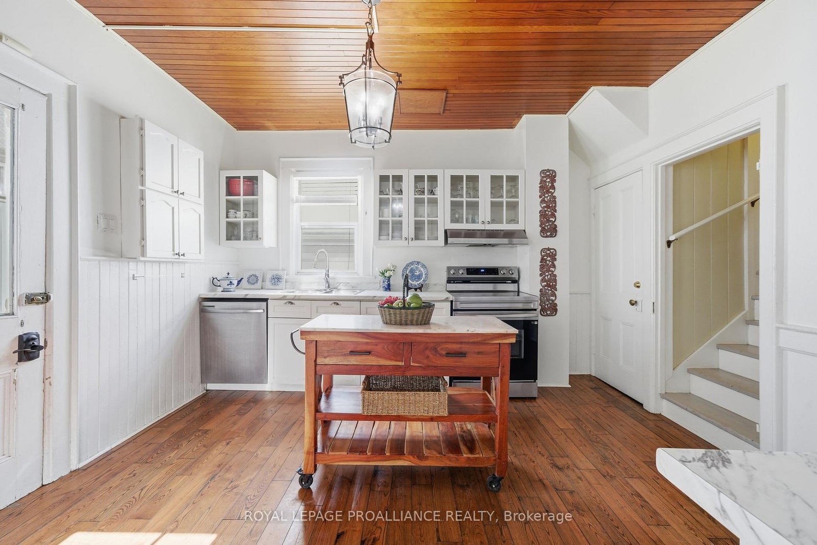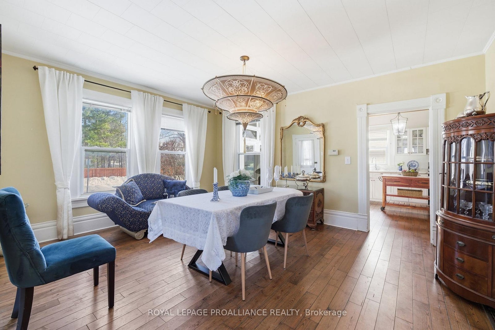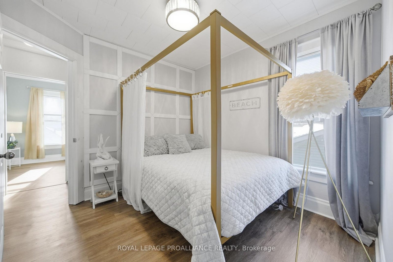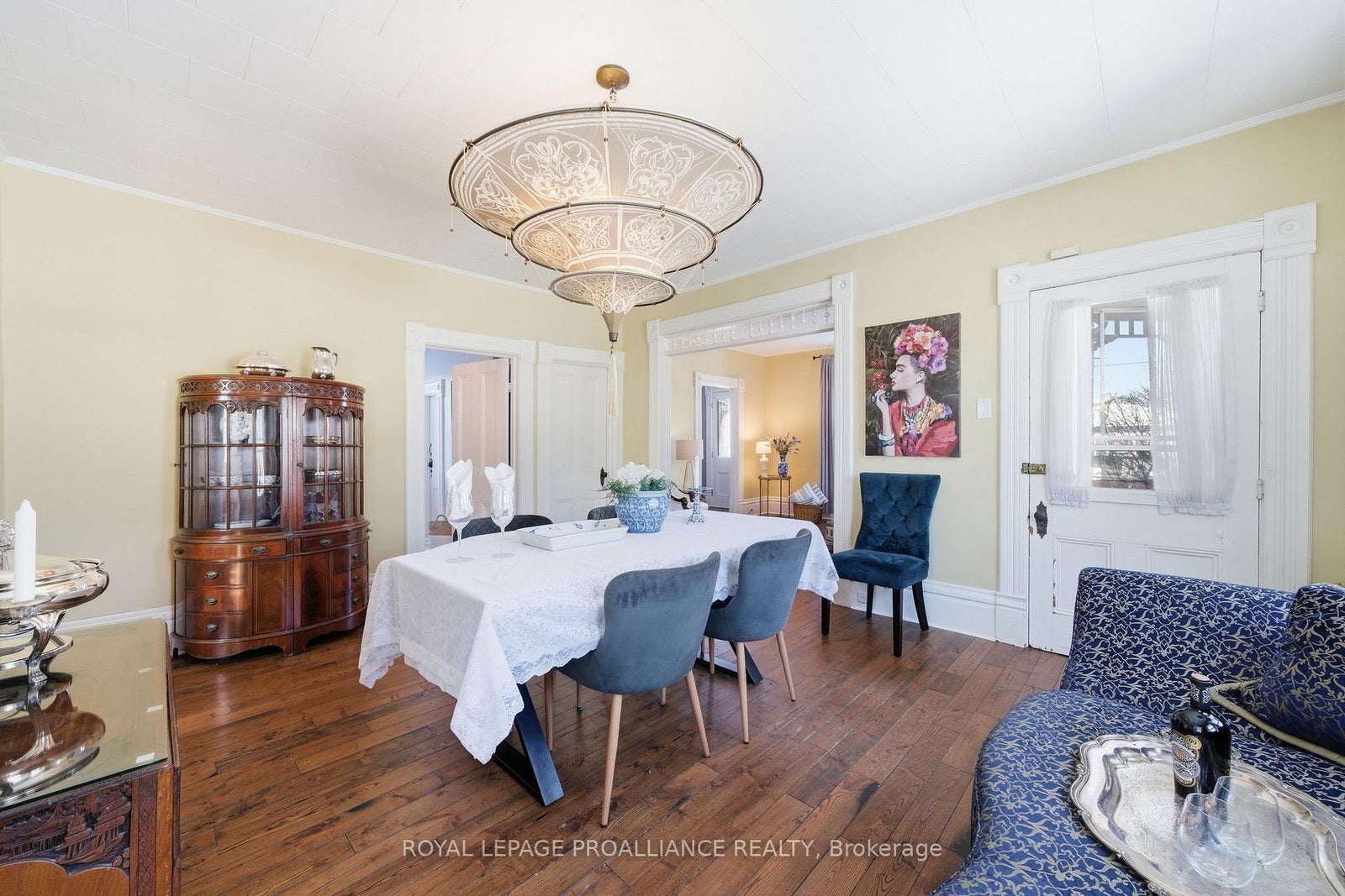 Introducing 47 Paul Street in the heart of picturesque Prince Edward County. Perfectly positioned on a prominent corner in one of Picton's most desirable neighbourhoods, this classic Queen Anne residence sits just steps away from the local school and park, and is an easystroll to downtown shops, dining, theatre, and amenities. Surrounded by other heritage properties, this distinguished home stands out with its wraparound gazebo-style porch adorned with intricate gingerbread detailing. Large, inviting windows fill the interior with natural light, creating a warm and welcoming atmosphere ideal for family living or guest accommodations. The home offers three bedrooms and two full bathrooms as well as a transferrable whole-home Short-Term Accommodation (STA) license. Character details are beautifully preserved throughout, from the tongue-and-groove wood ceiling in the kitchen to the original millwork, decorative spindle accents, and substantial baseboards. Designed with both comfort and entertaining in mind, the main floor features a formal dining room and spacious living room, alongside an updated kitchen complete with brand-new countertops and charming original wood ceiling detail. The home's original staircase leads to a generous upper level with a cozy family sitting area, three well-proportioned bedrooms, and a second full bathroom. Practical features include a detached single-car garage and ample storage space, offering convenience to match the home's historic charm. At 47 Paul Street, classic architectural beauty blends seamlessly with modern-day updates.