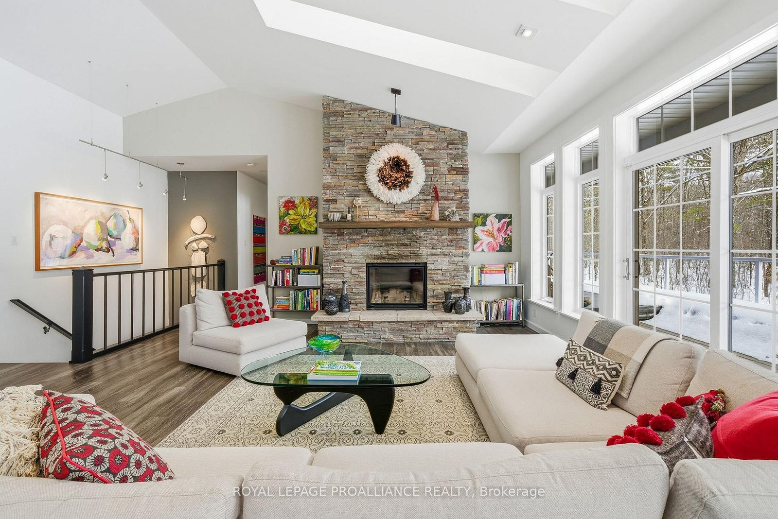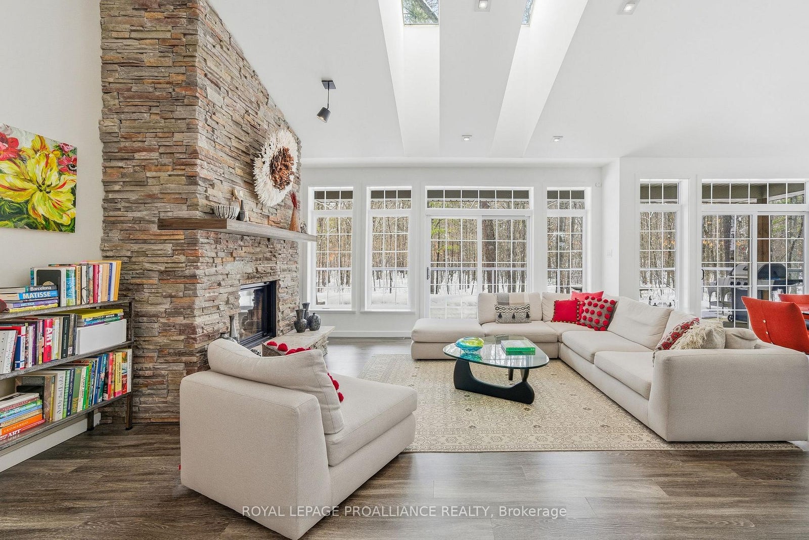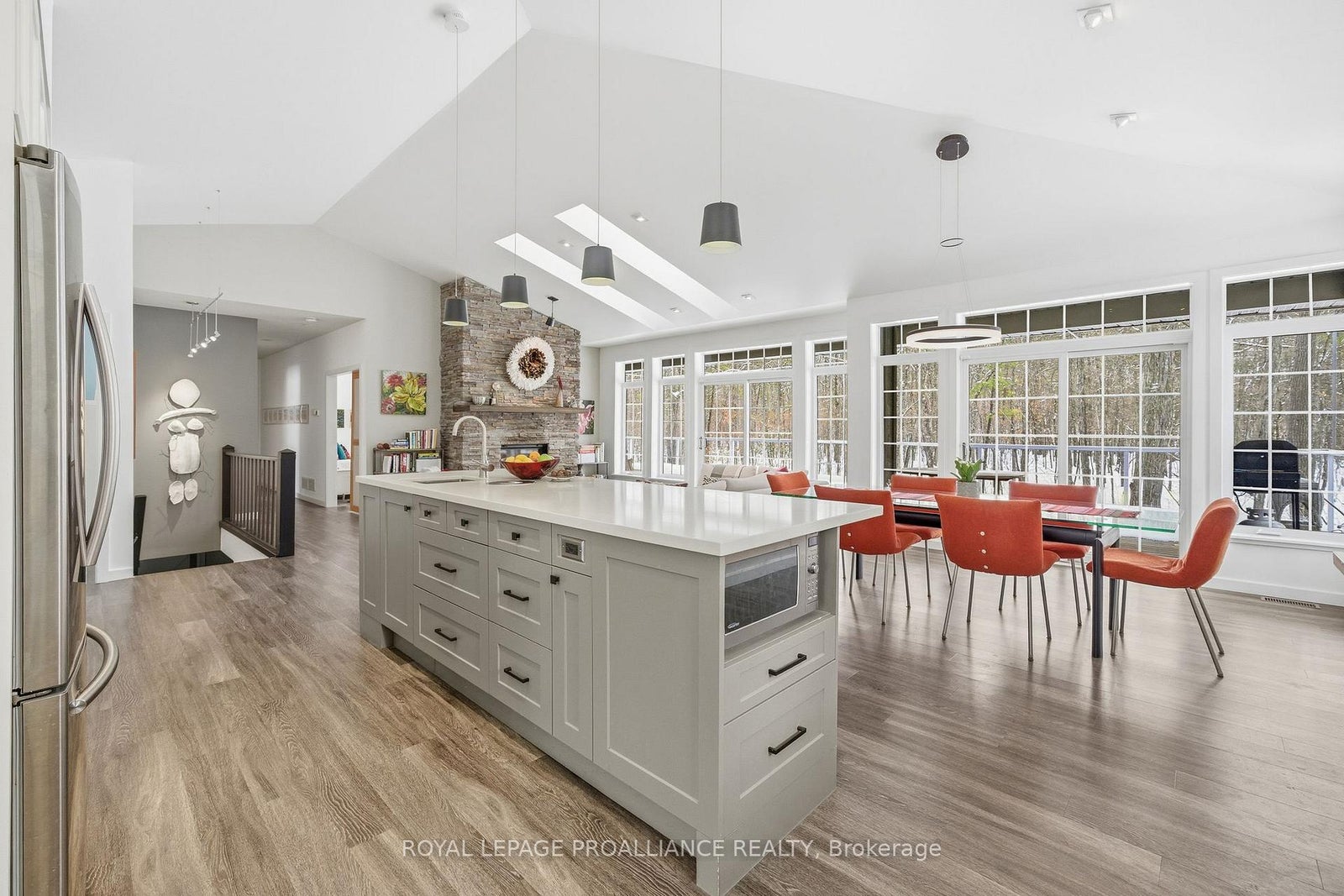 Follow the circular driveway through the trees to discover this inviting custom-built home, tucked away in a peaceful forest setting. Just minutes north of Picton, this raised ranch bungalow offers three bedrooms and an open-concept great room combining a spacious gourmet kitchen with dining and living areas. A striking stone wood-burning fireplace climbs to the vaulted ceiling, while expansive windows and skylights fill the entire space with abundant natural light and showcase the surrounding landscape. A screened-in 50' deck extending the full length of the back, provides front-row seats to the woods and its inhabitants, great for al fresco dining. The primary bedroom features a walk-in closet, a four-piece ensuite and direct access to the deck and hot tub install for a relaxing retreat. The commodious semi-finished basement boasts 8' ceilings, a wood-burning stove and a separate side entrance that together with the upstairs offers over 3,000 square feet. An oversized heated double garage is split between an artist's studio with skylights and patio doors overlooking a deck and mature perennial gardens while the remaining garage currently serves as a workshop/garage with 240 volt service. Lastly, a large, matching shed provides ample space for gardening tools and power equipment. This home is a turnkey invitation for cozy country living and entertaining. **** New 97% HE Propane furnace -2026, front and back decks restored & new Bosch Dishwasher- 2025, ensuite fully renovated -2024, new kitchen appliances, washer and dryer, powder room - 2017**** Garage Dimensions 27' x 18'8" | 504 sq ft Studio Dimensions 27'4" x 16'3" | 444 sq ft