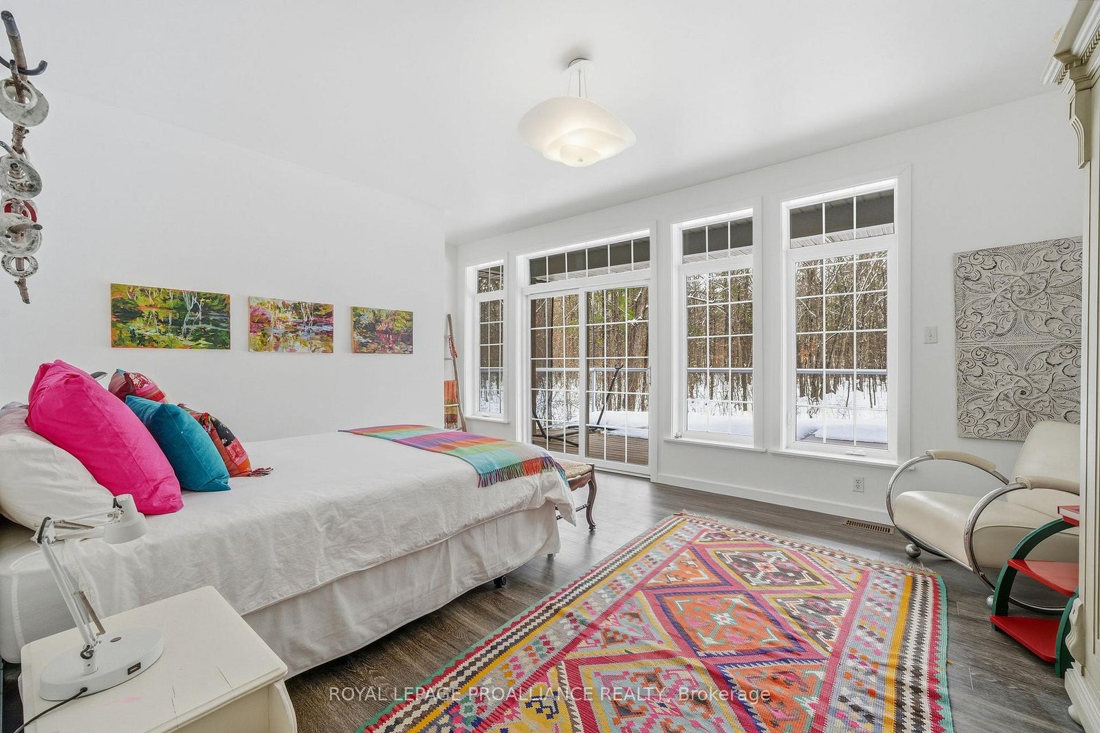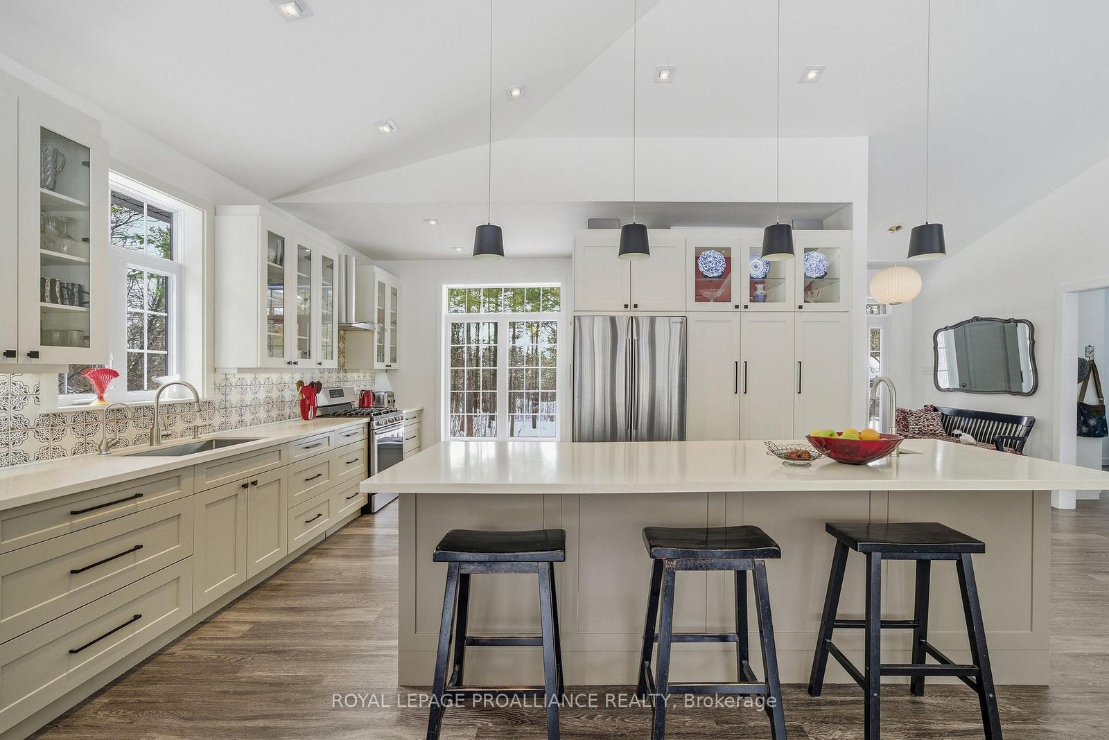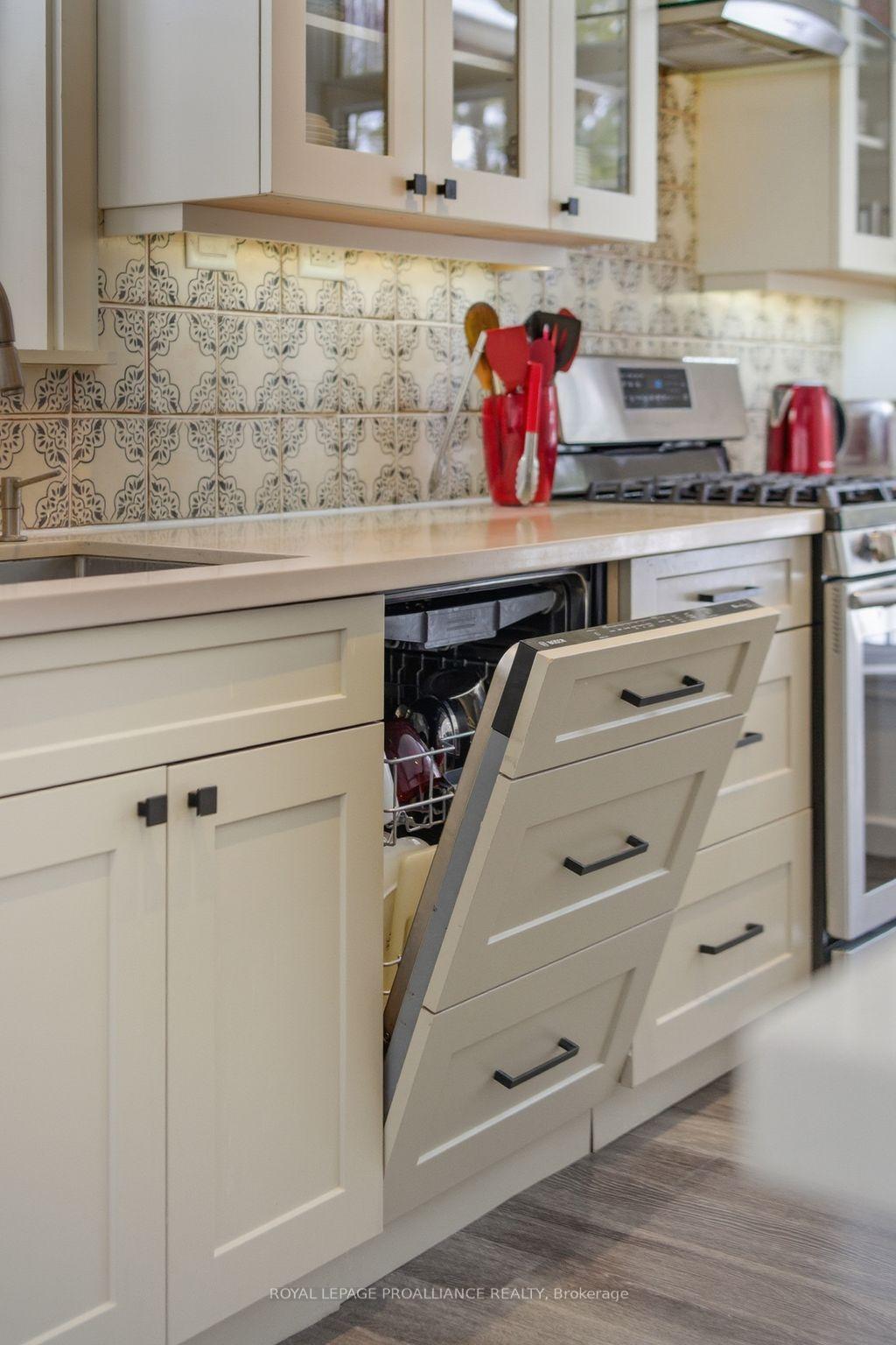 Follow the circular driveway through the trees to discover this inviting custom-built home, tucked away in a peaceful forest setting. Just minutes north of Picton, this raised ranch bungalow offers three bedrooms and an open-concept great room combining a spacious gourmet kitchen with dining and living areas. A striking stone wood-burning fireplace climbs to the vaulted ceiling, while expansive windows and skylights fill the entire space with abundant natural light and showcase the surrounding landscape. A screened-in 50' deck extending the full length of the back, provides front-row seats to the woods and its inhabitants, great for al fresco dining. The primary bedroom features a walk-in closet, a four-piece ensuite and direct access to the deck and hot tub install for a relaxing retreat. The commodious semi-finished basement boasts 8' ceilings, a wood-burning stove and a separate side entrance that together with the upstairs offers over 3,000 square feet. An oversized heated double garage is split between an artist's studio with skylights and patio doors overlooking a deck and mature perennial gardens while the remaining garage currently serves as a workshop/garage with 240 volt service. Lastly, a large, matching shed provides ample space for gardening tools and power equipment. This home is a turnkey invitation for cozy country living and entertaining. **** New 97% HE Propane furnace -2026, front and back decks restored & new Bosch Dishwasher- 2025, ensuite fully renovated -2024, new kitchen appliances, washer and dryer, powder room - 2017**** Garage Dimensions 27' x 18'8" | 504 sq ft Studio Dimensions 27'4" x 16'3" | 444 sq ft